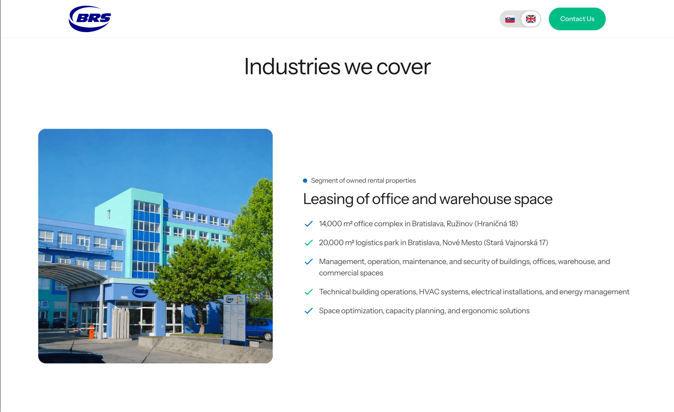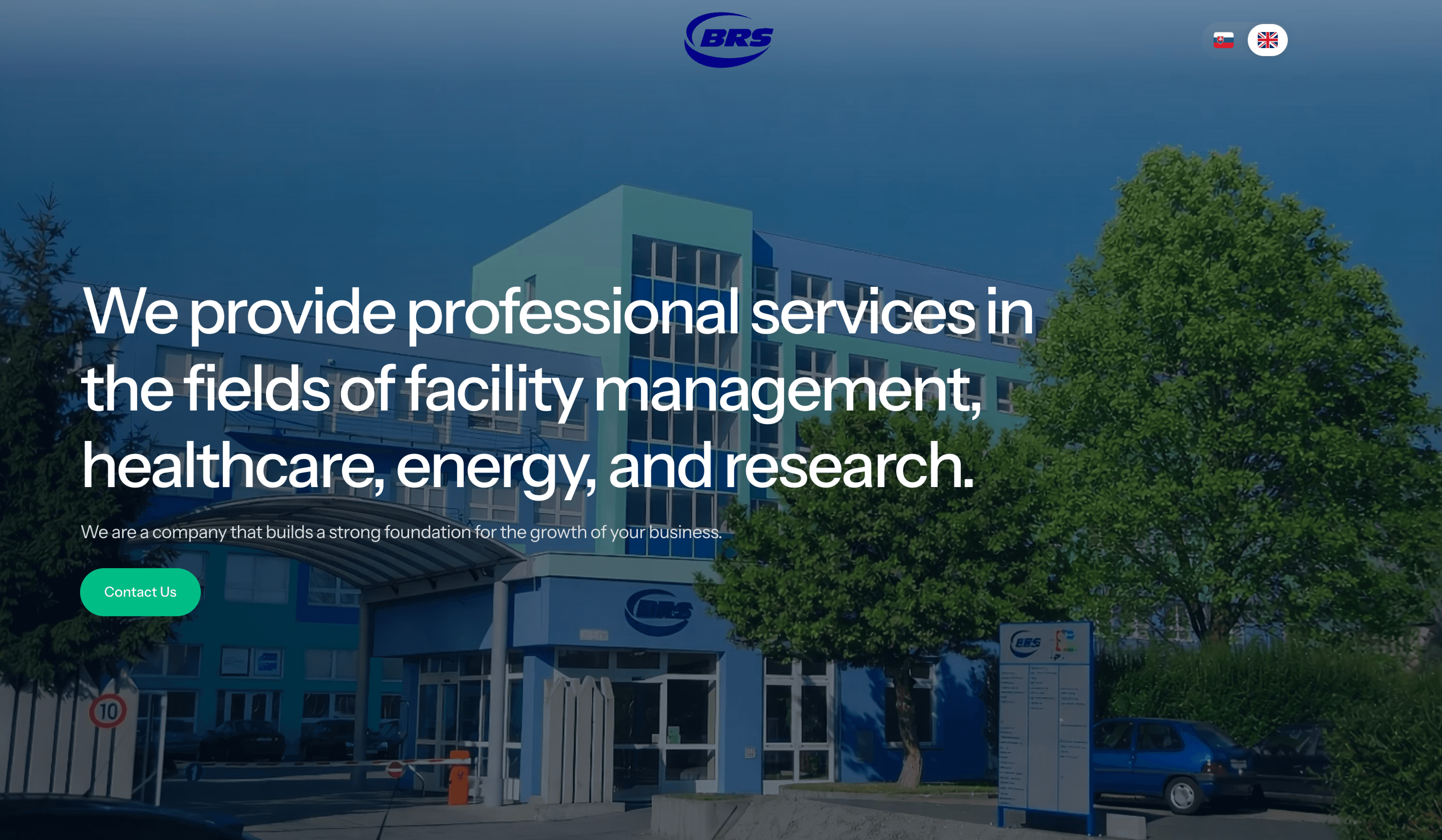 For the hero section, we placed a background photo of the company’s premises and built the section with a clean, simple structure.