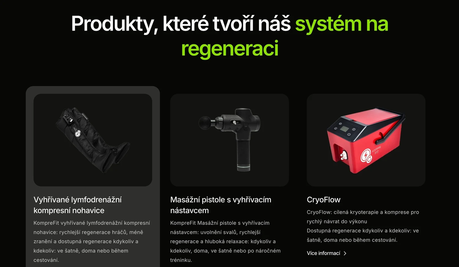 Bylo nutné odprezentovat to, co je vlastně regenerační systém KompreFit, z čeho se skládá a jaké vlastnosti mají jednotlivé produkty.