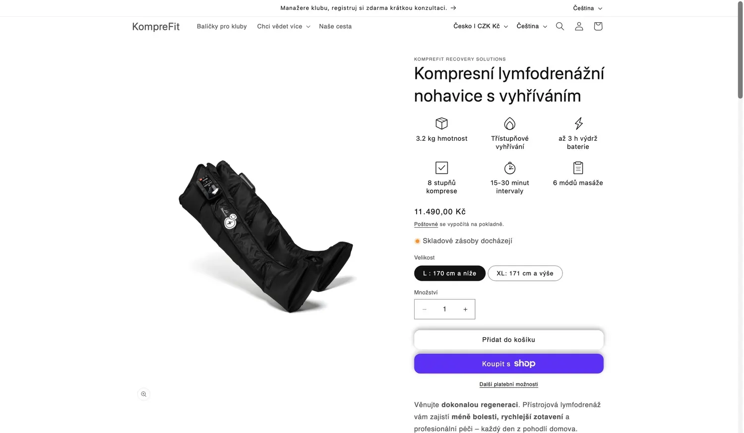Nakonec přestala dávat smysl úplně, protože se KompreFit rozhodl začít klubům nabízet individuální sestavení celého regeneračního systému na míru. A tady vznikla potřeba prezentačních stránek pro kluby, konkrétně jejich manažery.