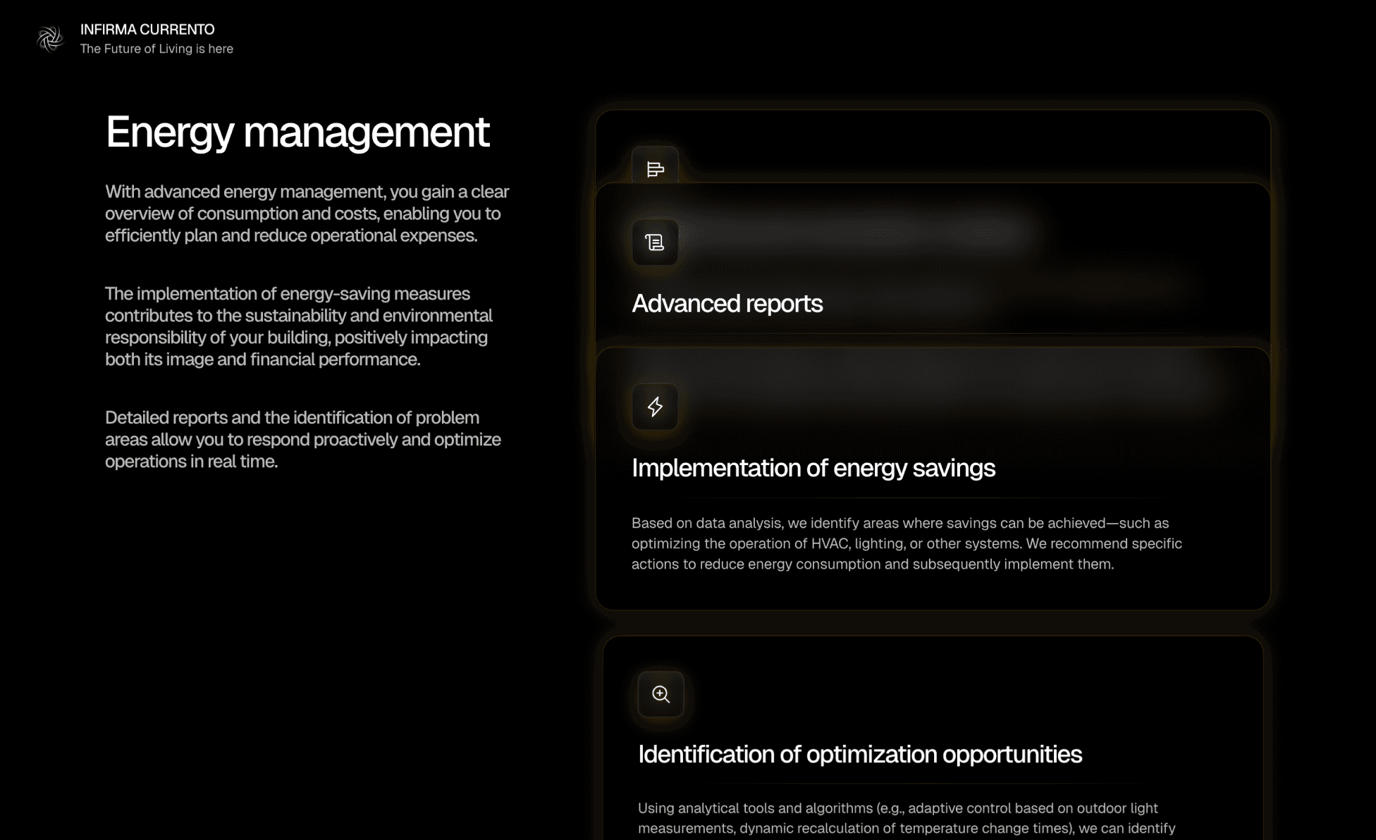 Pro technologickou firmu Infirma Currento sídlící v Dubaji, která automatizuje budovy, integruje zabezpečení s umělou inteligencí a modernizuje domácnosti na chytré domovy, jsme vytvořili futuristické webové stránky. Takto probíhala jejich tvorba.